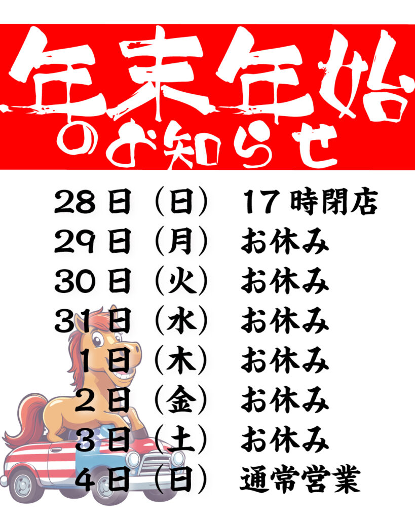 【令和7年12月29日(月)~ 令和8年1月3日(土)まで】